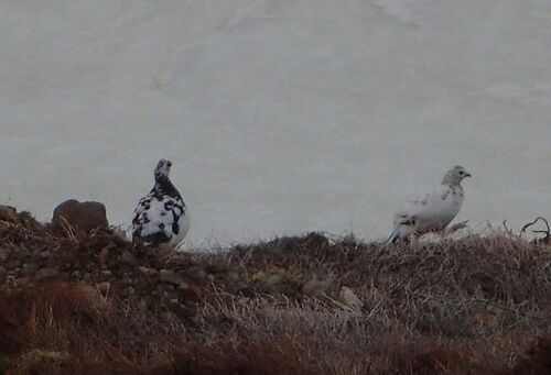 2日目その4からの続きです5月5日、雷鳥荘で朝を迎えました予報によれば、今日も天気は良さそう♪4時40分頃から、朝焼けを見ようと屋外に出ました日の出時刻は5時過ぎ、時間があったので雷鳥探しに出ると…2羽の雷鳥です♪カップルでしょうか?どこの世界も甘…