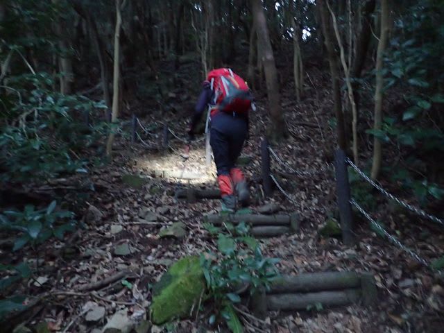 まだ暗いのでヘッドライトで足元を確認しながら進みます。