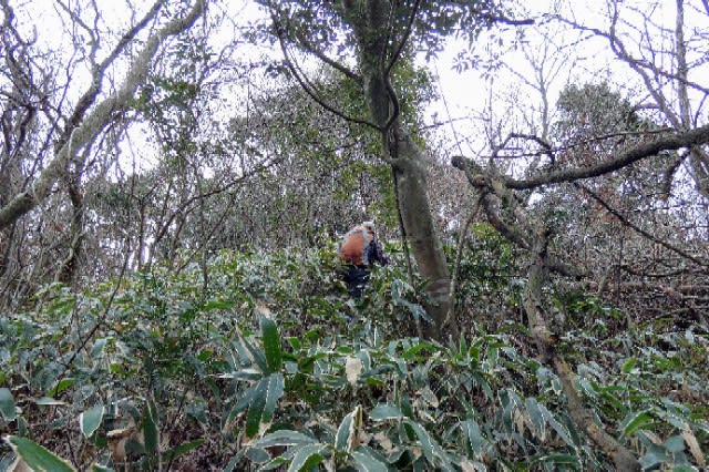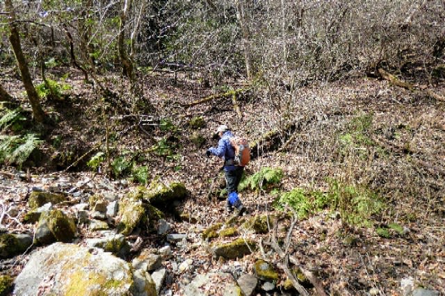 途中から、テープが全くない 倒木の谷に入り