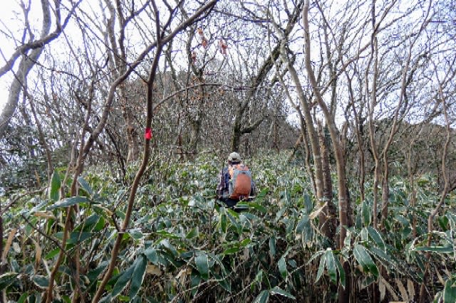 薄い踏み跡を見逃さないように注意して