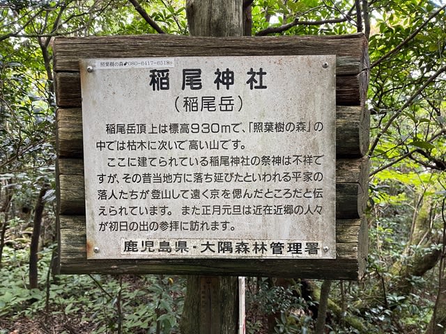 稲尾岳は鹿児島県が保護管理している「照葉樹の森」の一角にあります。