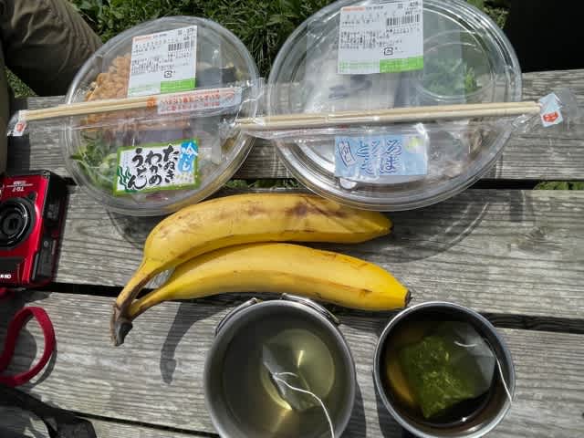 「元地灯台」手前のベンチでお昼