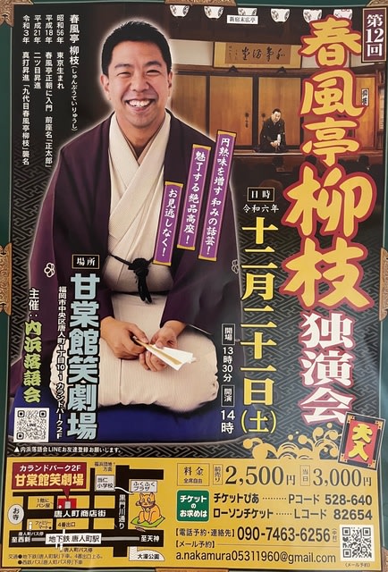 今日は、九代目春風亭柳枝独演会です。