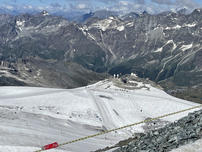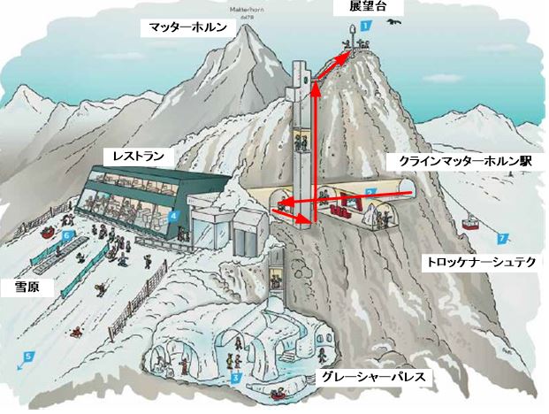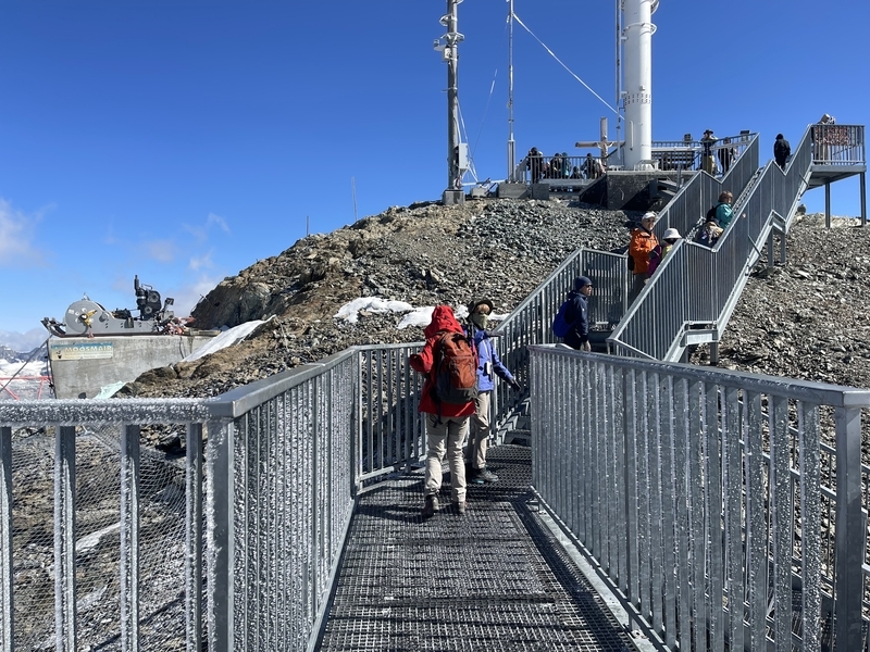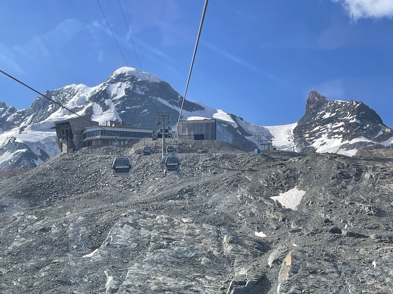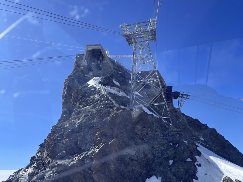 ここで大きなロープウェイに乗り換えると,あと一駅で終点のクライン・マッターホルン駅(標高3,817m)です。