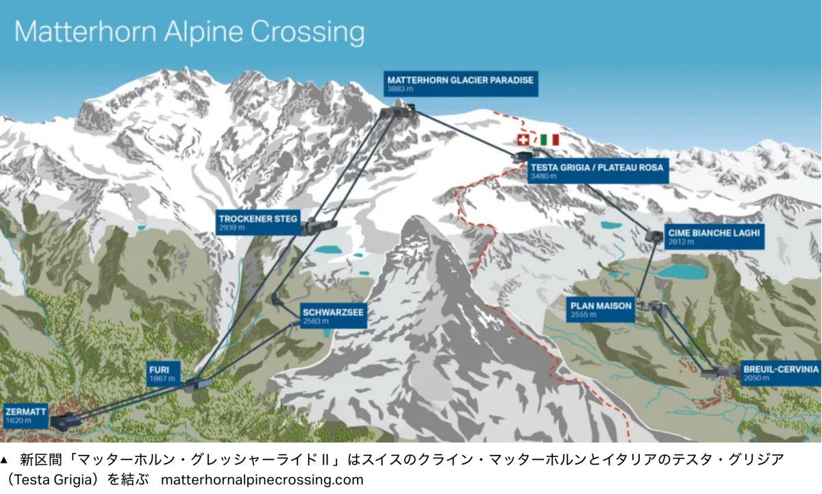 2023年夏に開業した新型ロープウェイ「マッターホルン・アルパイン・クロッシング」