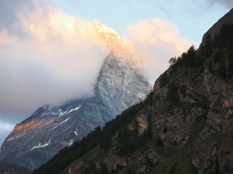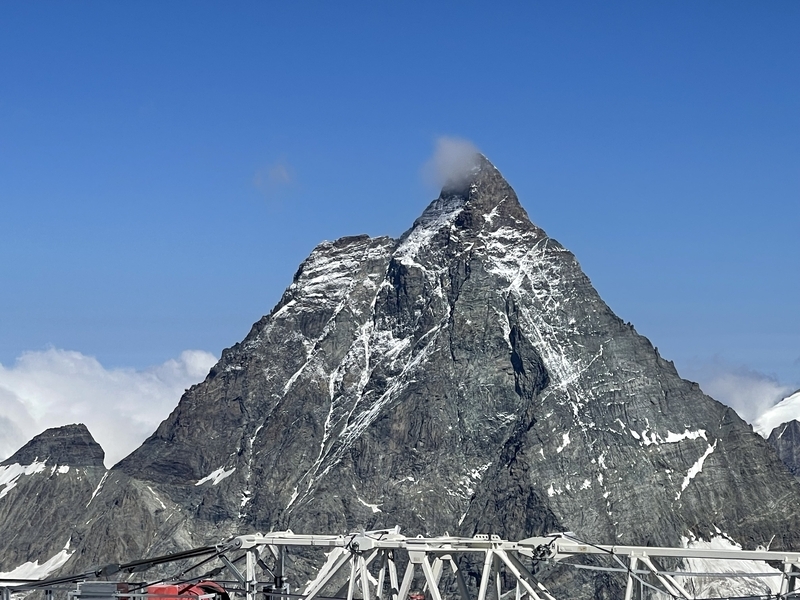 やっぱりマッターホルンの頂上には雲が張り付いています。もう少しなのに…