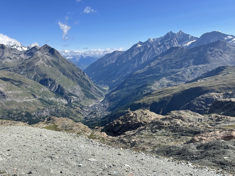 外に出てみると遥か下にツェルマットの村が見えます。