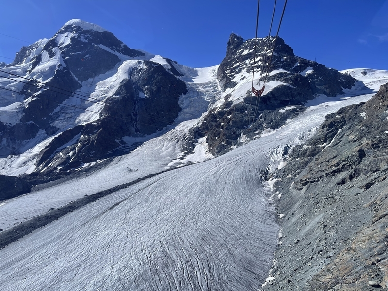スイス・イタリアの国境地点テスタ・グリジア(標高3,480m)まで国境を4分で結びます。