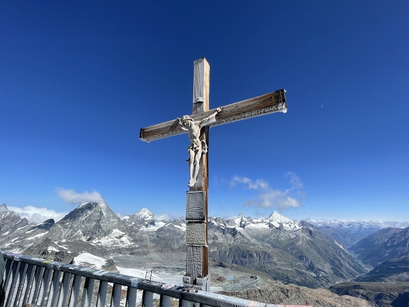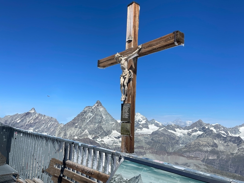 有名なキリスト像、後ろにマッターホルン