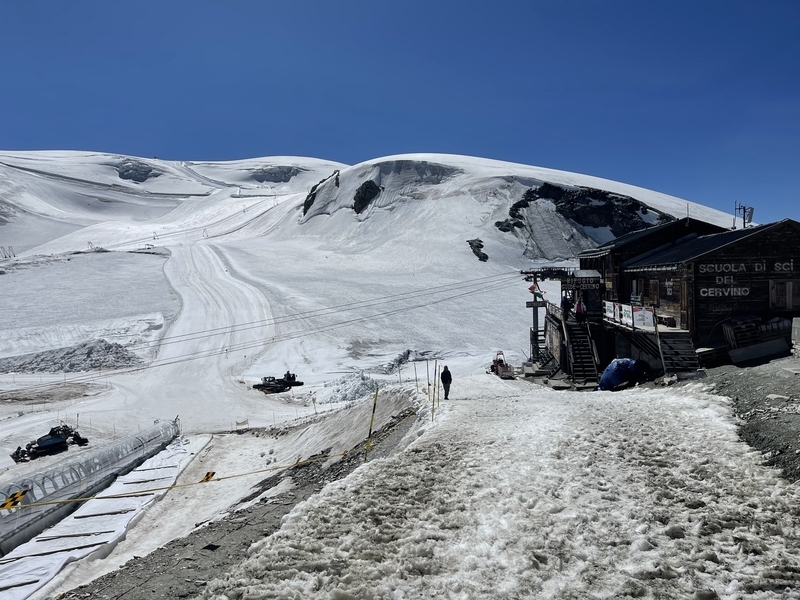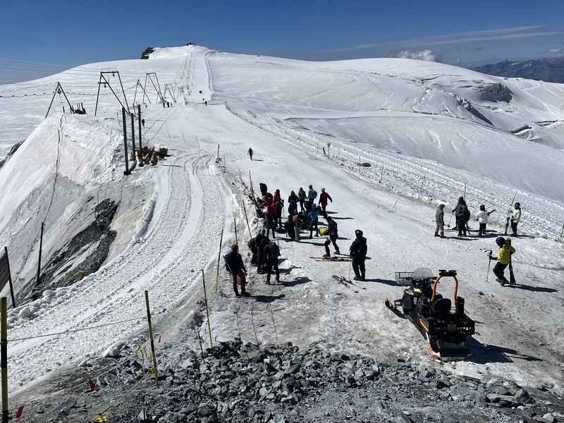 目の前に広がる雪景色。夏でも溶けない氷。ここは夏スキーが楽しめるスキー場、大賑わいでした。