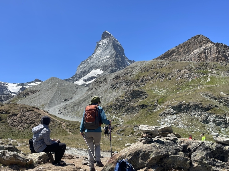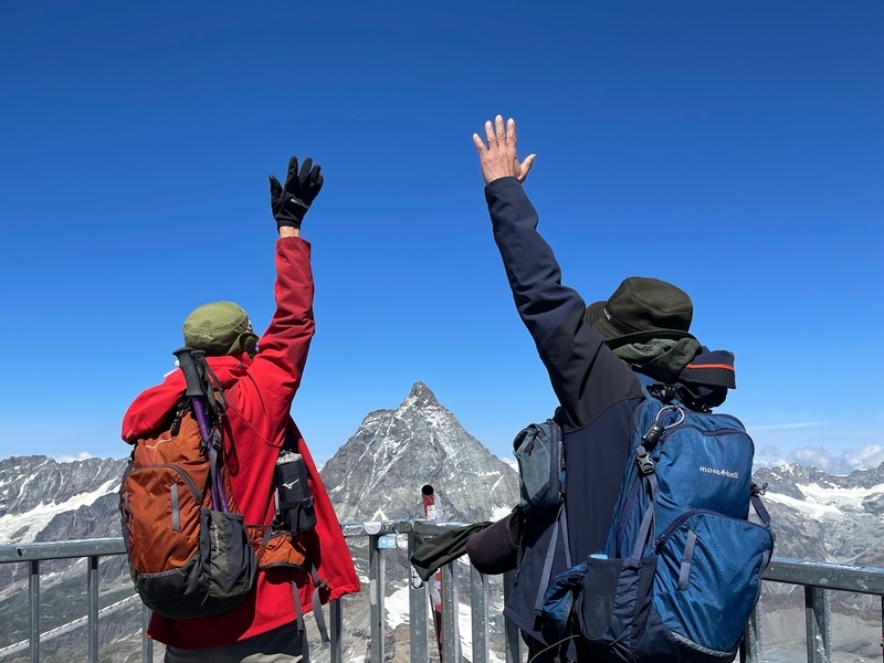 雲の取れたマッターホルンを目に焼き付けて記念の写真を