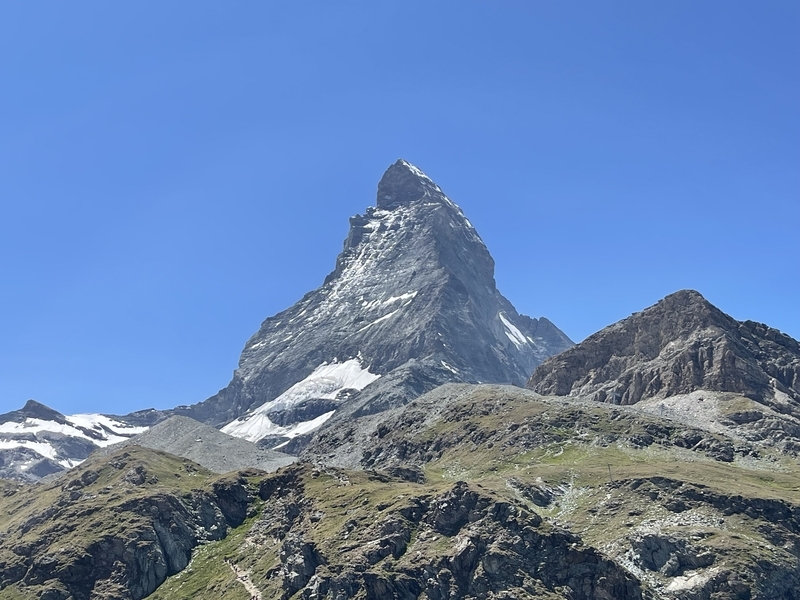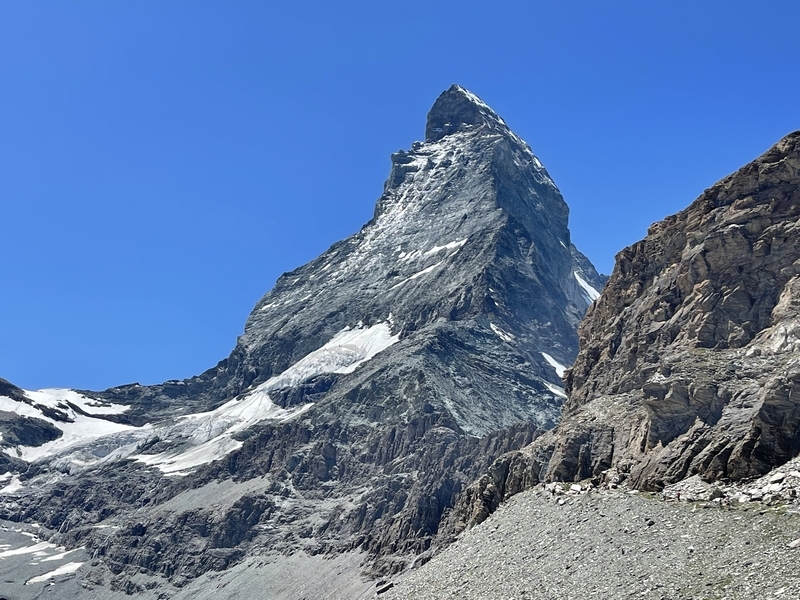 南側から見るマッターホルンは全く別の山ですね。ツェルマットからの方がカッコいい!