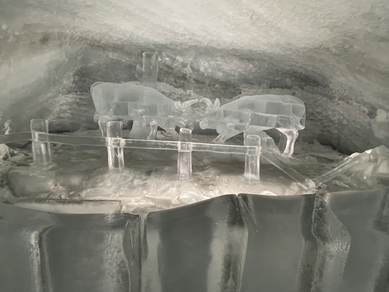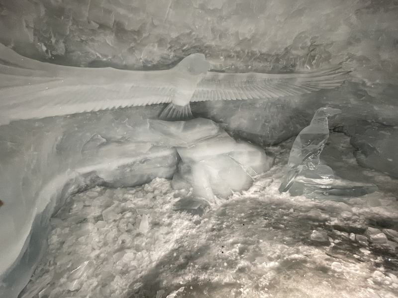 氷河を掘って作られたパラダイス、氷の彫刻がありました。